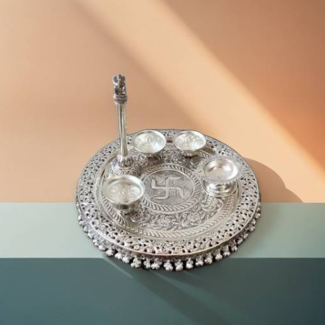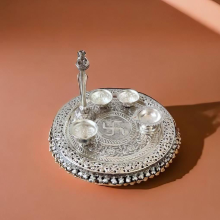 - Sacred Elegance: Crafted from high-quality sterling silver, this pooja thal showcases a traditional design that enhances the spiritual atmosphere of your home.